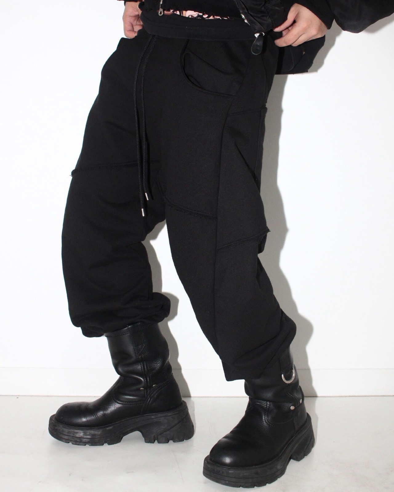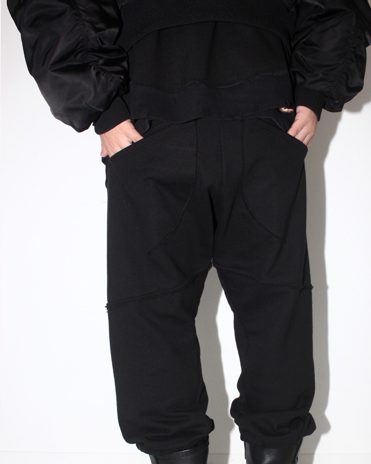 立体的シルエットを表現するために施した切り替えがチープになりがちなスウェットパンツに重厚なディテールを与え、ワンアイテムでも注目度の高いデザインに仕上がっています