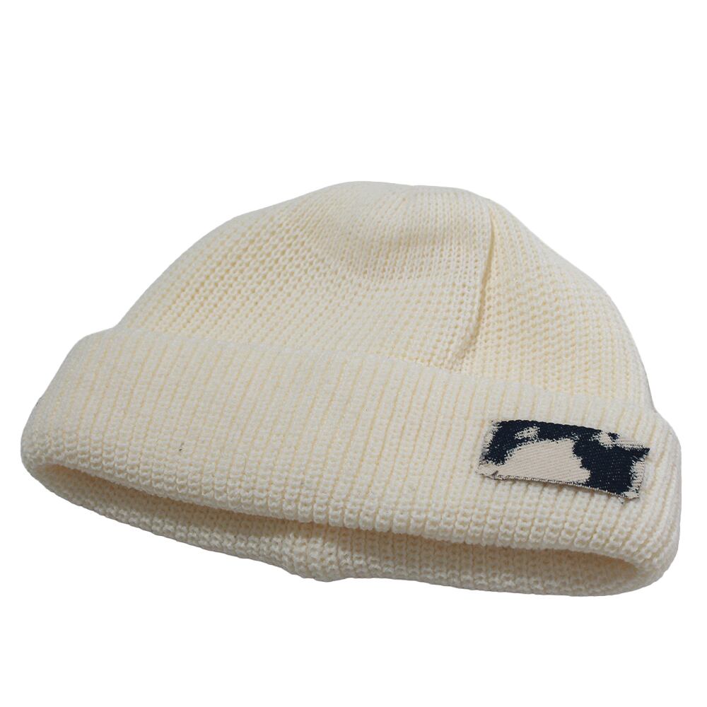 トレンドのビーニーに、むら染め風のデニムをタグのように配置したデザインのビーニーが登場!