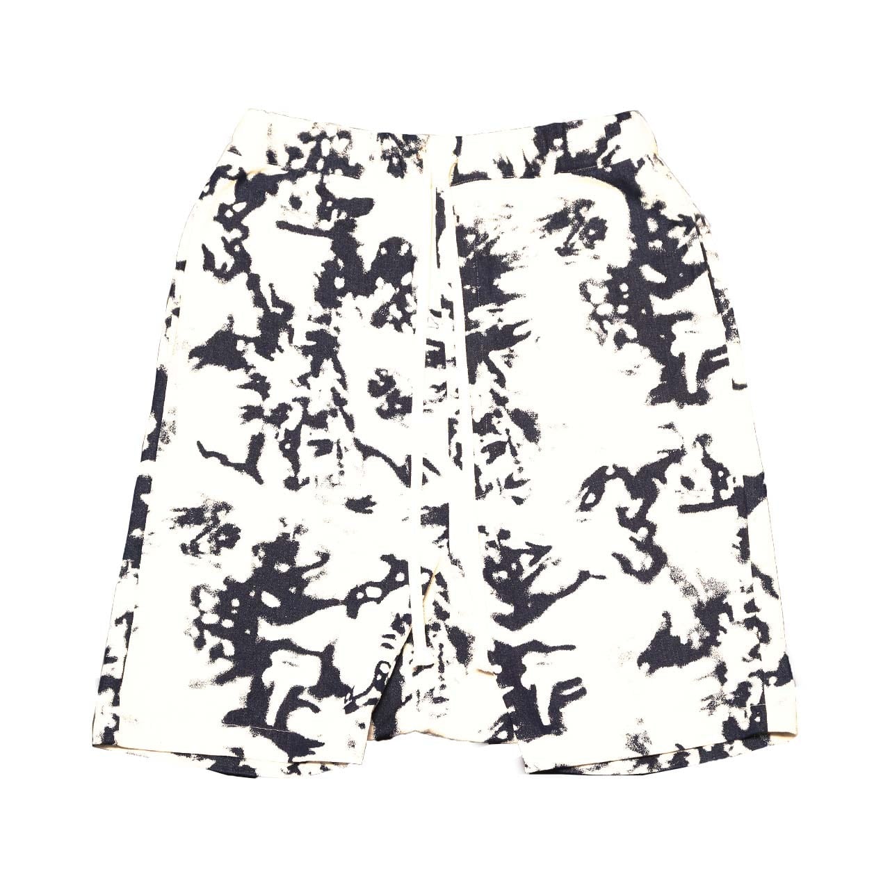 ムラ染めプリントの風合い豊かなデニム素材が魅力のサルエルショートパンツ。ヒップから太ももにゆとりを持たせたゆるめのシルエットと、ドローストリングとゴムによる締め付け感のないウエストが快適な履き心地を約束します。ユニセックスで着用可能なデザインで、オシャレなスタイリングを楽しめます。ストリートファッションやカジュアルコーデにぴったりの一枚です。夏のボトムスに、是非取り入れてみてください。